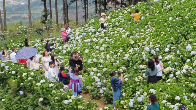 位于北河县泰降坡(Thai Giang Pho) 社 南土(Nam Tho) 村的绣球花园正值盛花期,花团锦簇,景色迷人,吸引了大量游客在今年假期前来观赏、拍照留念。