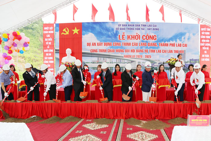On October 14, 2020, Lao Cai Provincial People's Committee held a ground breaking ceremony for the project to build Lang Giang bridge. This is one of the contructions celebrating the XVI Lao Cai Provincial Party Congress, term 2020 - 2025.Attending the ceremony were Mr. Nguyen Van Vinh - Member of the Party Central Committee, Secretary of the Provincial Party Committee, Chairman of the Provincial People's Council; Mr. Dang Xuan Phong - Deputy Secretary of the Provincial Party Committee, Chairman of the Provincial People's Committee; Mr. Bui Quang Vinh - former member of the Party Central Committee, former Minister of Planning and Investment, former Secretary of the Lao Cai Provincial Party Committee; The Standing comrades of the Provincial Party Committee, People's Council, People's Committee, National Assembly Delegation and leaders of departments, agencies, districts, towns and cities.