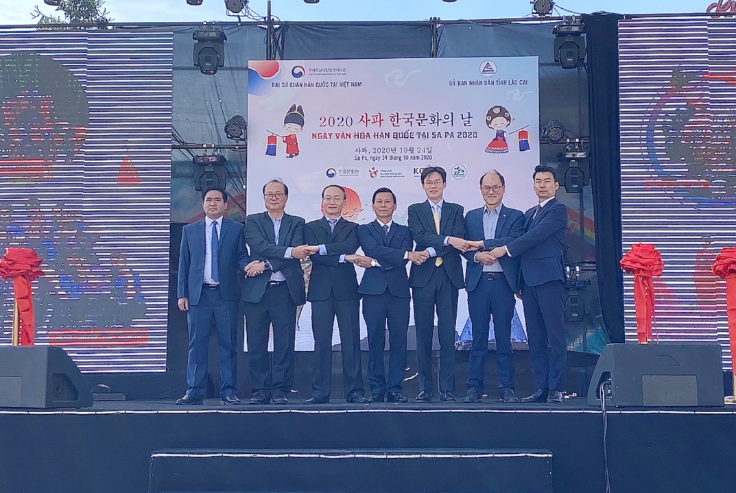 On October 24, in Sa Pa town, the Korean Embassy in coordination with the Provincial People's Committee held the Korean Cultural Day in Sa Pa in 2020.Attending were Mr. Giang Thi Dung, Vice Chairman of the Provincial People's Committee; leaders of the Department of Culture, Sports and Tourism of the province, the People's Committee of Sa Pa town, the Korean Cultural Center in Vietnam, the representative office of the Korea Tourism Organization (KTO), the Korea Content Promotion Agency Korea (KOCCA), Korea Business Association (KORCHAM).