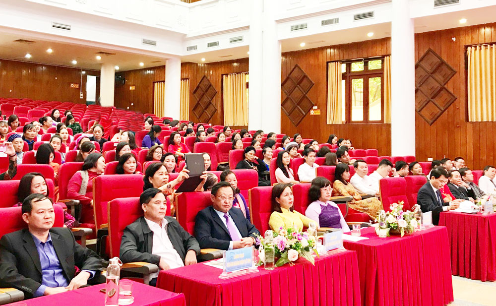 Attending were the comrades: Dang Xuan Phong, Secretary of the Provincial Party Committee, Chairman of the Provincial People's Committee; Giang Seo Van, Member of the Standing Committee of the Provincial Party Committee, Chairman of the Vietnam Fatherland Front Committee of the province; Giang Thi Dung, Vice Chairman of the Provincial People's Committee; leaders of departments, agencies, unions of the province, and generations of women represent 110,000 women officials and members in the province.