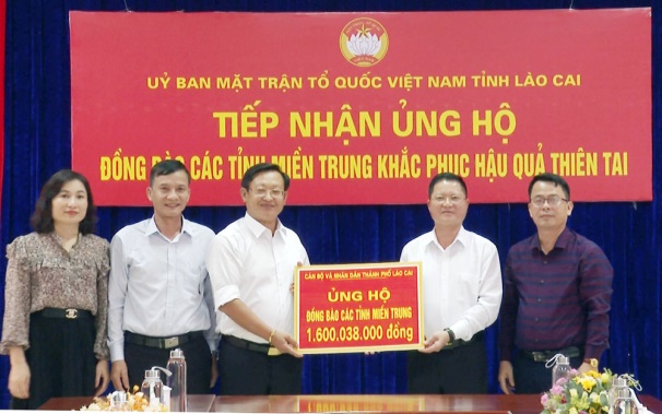 The Committee of the Vietnam Fatherland Front of Lao Cai province received support for the people of Central Vietnam. |
