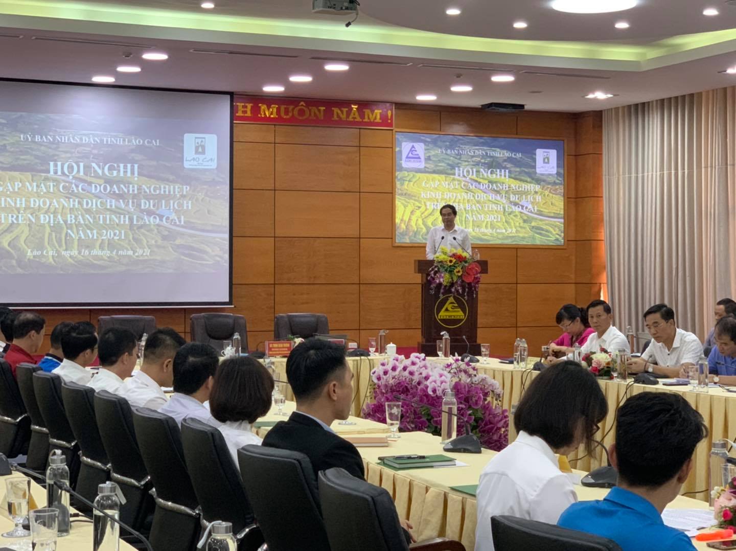 On April 16, the People's Committee of Lao Cai province held a conference to meet tourism service businesses in Lao Cai province in order to strengthen exchanges and dialogue between governmental management agencies and tourism businesses in the provinces. The conference was moderated by Mr. Trinh Xuan Truong, Chairman of the Provincial People's Committee.After hearing from the Department of Culture, Sports, and Tourism, the preliminary presentation of the tourism stimulus plan "Lao Cai Beauty" in 2021 with four main groups of solutions, including: stimulating tourism through media, stimulating tourism through organizing cultural products - attractive tourist events, stimulating tourism demand through discount combos, stimulating tourism demand through mechanisms and policies of Lao Cai province, etc., the delegates discussed, proposed and recommended to leaders of the Provincial People's Committee to reduce difficulties and obstacles in the process of production and business activities.