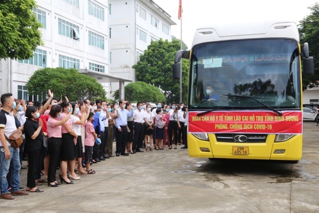 From July 23 to September 19, 2021, 49 medical personnel from provincial and district health units volunteered to join the mission to strengthen Binh Duong province in order to prevent and control the Covid-19 pandemic. Lao Cai province's health workers actively supported and successfully completed the task of assisting Binh Duong province in testing, treating, and caring for patients with Covid-19. The delegation is currently in medical isolation at the Bien May Hotel in Sa Pa.