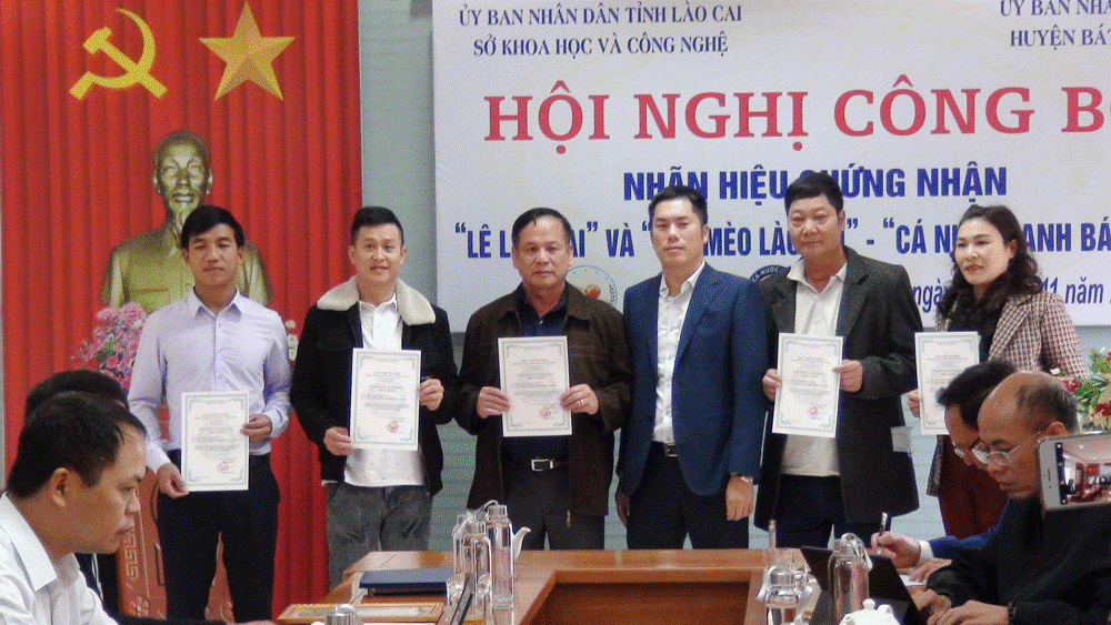 At the conference, leaders of the Department of Science and Technology awarded the Decision to grant the Trademark Certificate "Lao Cai Pear", "Lao Cai Apple" of the National Office of Intellectual Property of Vietnam; Department of Agriculture and Rural Development awarded the certificate of trademark "Bat Xat cold water fish". Bat Xat district awarded certificates of right to use trademarks of sturgeon and salmon from the Department of Science and Technology to 5 households in the district.