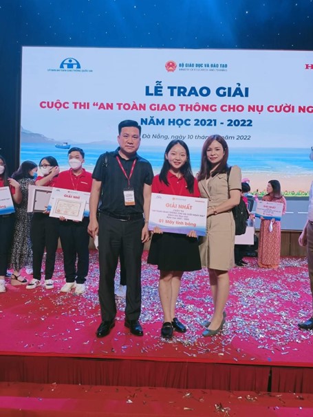 The Ministry of Education and Training in collaboration with the National Traffic Safety Committee and Honda Vietnam Company held the Award Ceremony of the “Traffic Safety for Tomorrow's Smile” contest for the school year 2021-2022. And there were two high school students from Lao Cai province were honored to win the first and second prizes in this contest.Specifically, on April 10, 2022, the National Traffic Safety Committee in collaboration with the Ministry of Education and Training and Honda Vietnam Company held the Award Ceremony of the contest “Traffic Safety for Tomorrow's Smile” school year 2021 - 2022.
