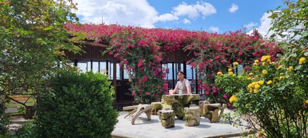 By 2010, seeing that Sa Pa tourism was on the rise, Mr. Chinh learned how to extract and propagate Mrs. B.R. Cant Rose and planted about 200 trees. After 1 year, the tree grew well, he again came up with the idea of converting tourism by expanding the area of growing ancient roses, Mrs. B.R. Cant Rose, to serve visiting and experiencing. Mr. Chinh confided: “At the beginning of 2012, I decided to convert all of the land planted to chayote (about 2 hectares) to grow ancient roses. At that time, Mrs. B.R. Cant Rose was popular in the market and many people bought for their hobby. Seeing that, I propagated the supply to the market, opened more restaurants and expanded the area of the rose garden named “Vuon Hong Mong Mo” to serve culinary needs, creating a check-in point for visitors to explore and discover”.