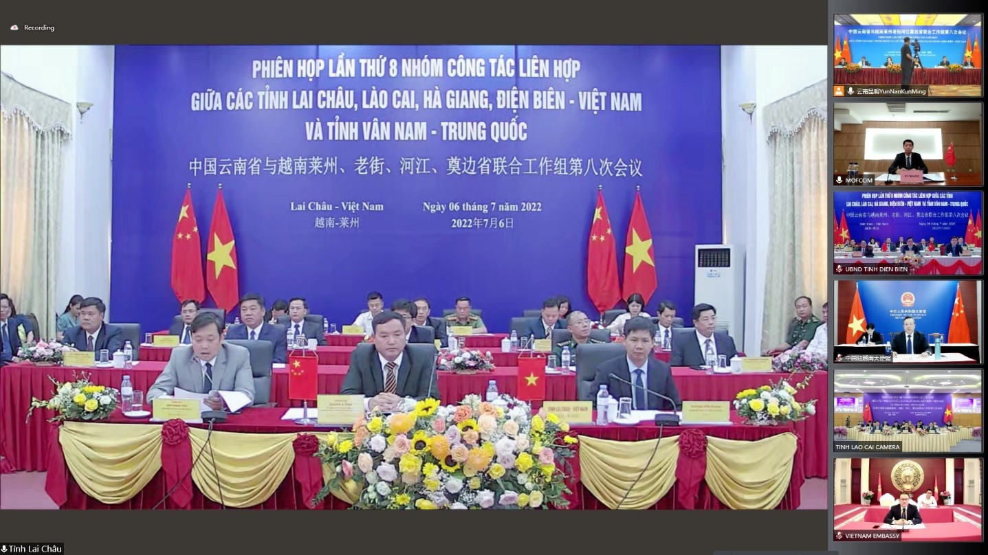 The 8th meeting of the joint working group between the provinces of Lao Cai, Lai Chau, Ha Giang, Dien Bien (Vietnam) and Yunnan province (China) was held on the afternoon of July 6 in the online meeting.Mr. Duong Bin, Deputy Governor of the People's Government of Yunnan Province (China) and Mr. Giang A Tinh, Vice Chairman of Lai Chau Provincial People's Committee hosted the meeting.