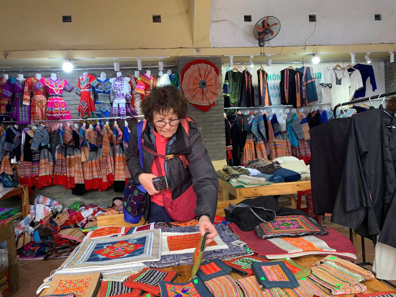 The brocade stalls are a feast for the eyes, offering a wide variety of designs. Each piece of brocade carries the intricate, refined patterns of the Mong people, meticulously embroidered with incredible patience and exceptional craftsmanship, all vividly displayed on the traditional dresses worn by Mong women. Mong clothing also serves as a marker to distinguish different subgroups. While the Black Mong are predominant in Sa Pa, Bac Ha is home to the Flower Mong, whose attire is adorned with colorful, sophisticated embroidery.