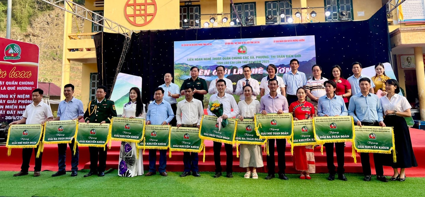 During 2 days (April 25-26), at Pha Long Primary School, Muong Khuong District, the 2025 Border Communes Mass Arts Festival with the theme "The Border is Homeland" took place enthusiastically, attracting the participation of hundreds of actors from border communes.The Organizing Committee presented souvenir flags to 12 participating delegations.