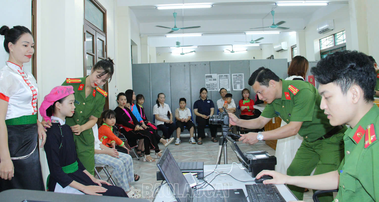 From the morning of July 1, the Social Order Administrative Police Team of the Public Security of 9 districts, towns and cities and the receiving point of the Social Order Administrative Police Department (Provincial Public Security) located at the Lao Cai Provincial Public Administration Service Center simultaneously deployed the issuance of ID cards for children aged 0-6 and people aged 6 and above.