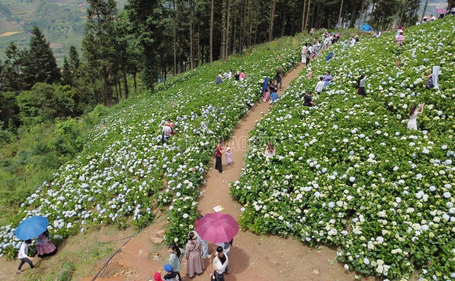 The hydrangea garden in Nam Tho village, Thai Giang Pho commune, Bac Ha district is in full bloom, attracting many tourists to visit and take photos during this year's holiday.