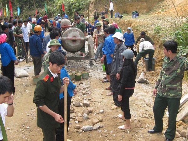 Cán bộ, Nhân dân tích cực tham gia đóng góp ngày công xây dựng đường giao thông nông thôn.