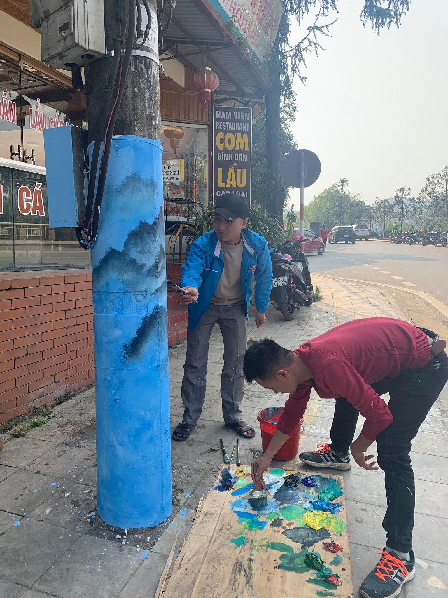 Đoàn thanh niên thị xã Sa Pa vẽ tranh cột điện trên các tuyến đường tạo cảnh quan môi trường sạch đẹp