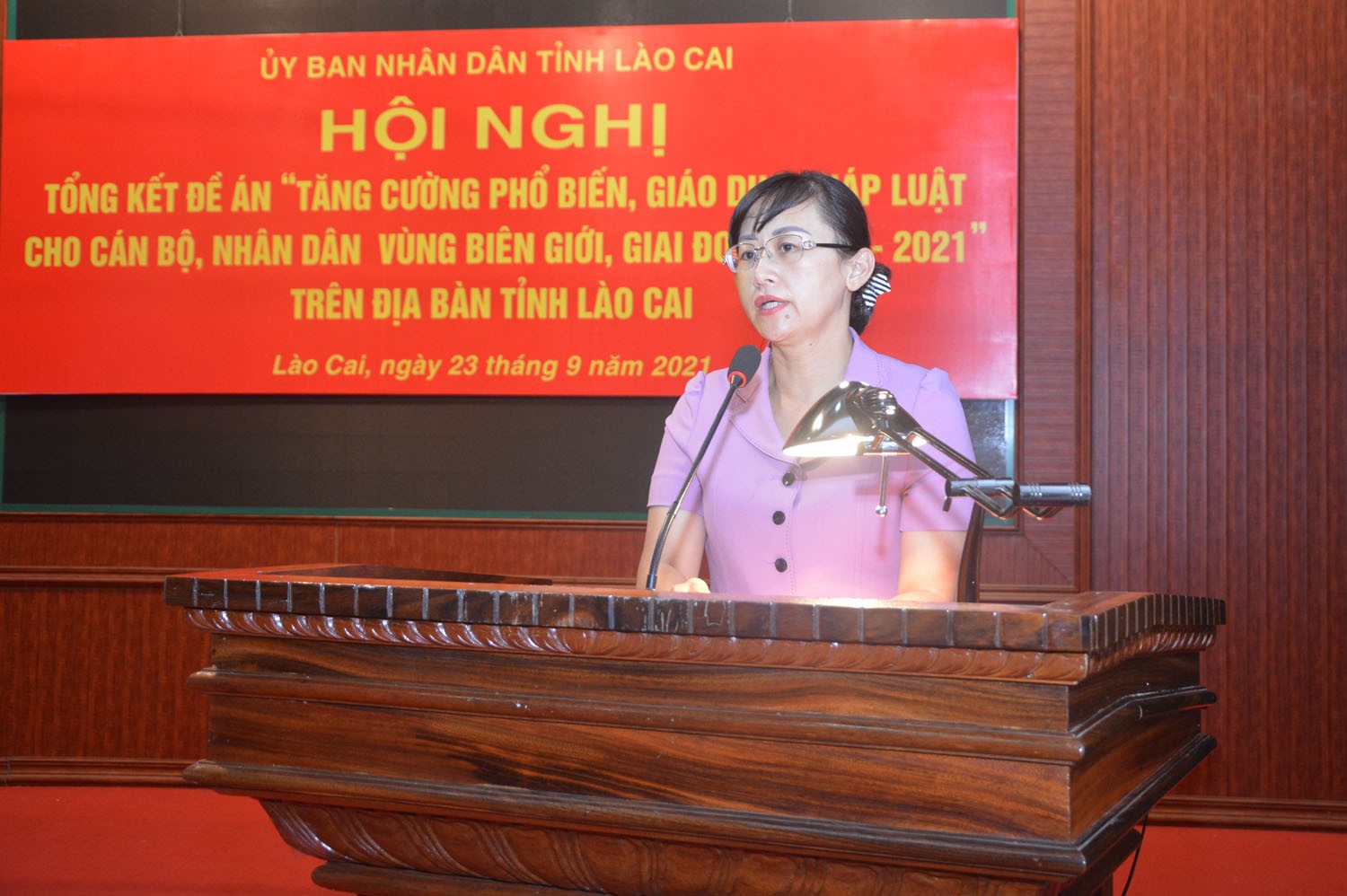 Chiều 23/9, UBND tỉnh Lào Cai tổ chức hội nghị tổng kêt Đề án “Tăng cường phổ biến, giáo dục pháp luật cho cán bộ, nhân dân vùng biên giới, giai đoạn 2017-2021”.Đồng chí Giàng Thị Dung, Phó Chủ tịch UBND tỉnh, Trưởng Ban Điều hành Đề án chủ trì hội nghị.