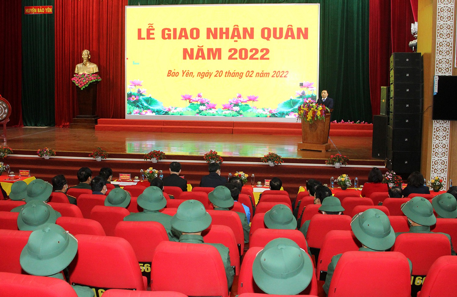 Năm 2022, huyện Bảo Yên được giao chỉ tiêu tuyển 126 tân binh; trong đó 100 tân binh thực hiện nghĩa vụ quân sự, 26 tân binh thực hiện nghĩa vụ công an nhân dân. Các công dân lên đường nhập ngũ đều có sức khỏe đảm bảo theo quy định, có 51 công dân viết đơn tình nguyện nhập ngũ.
