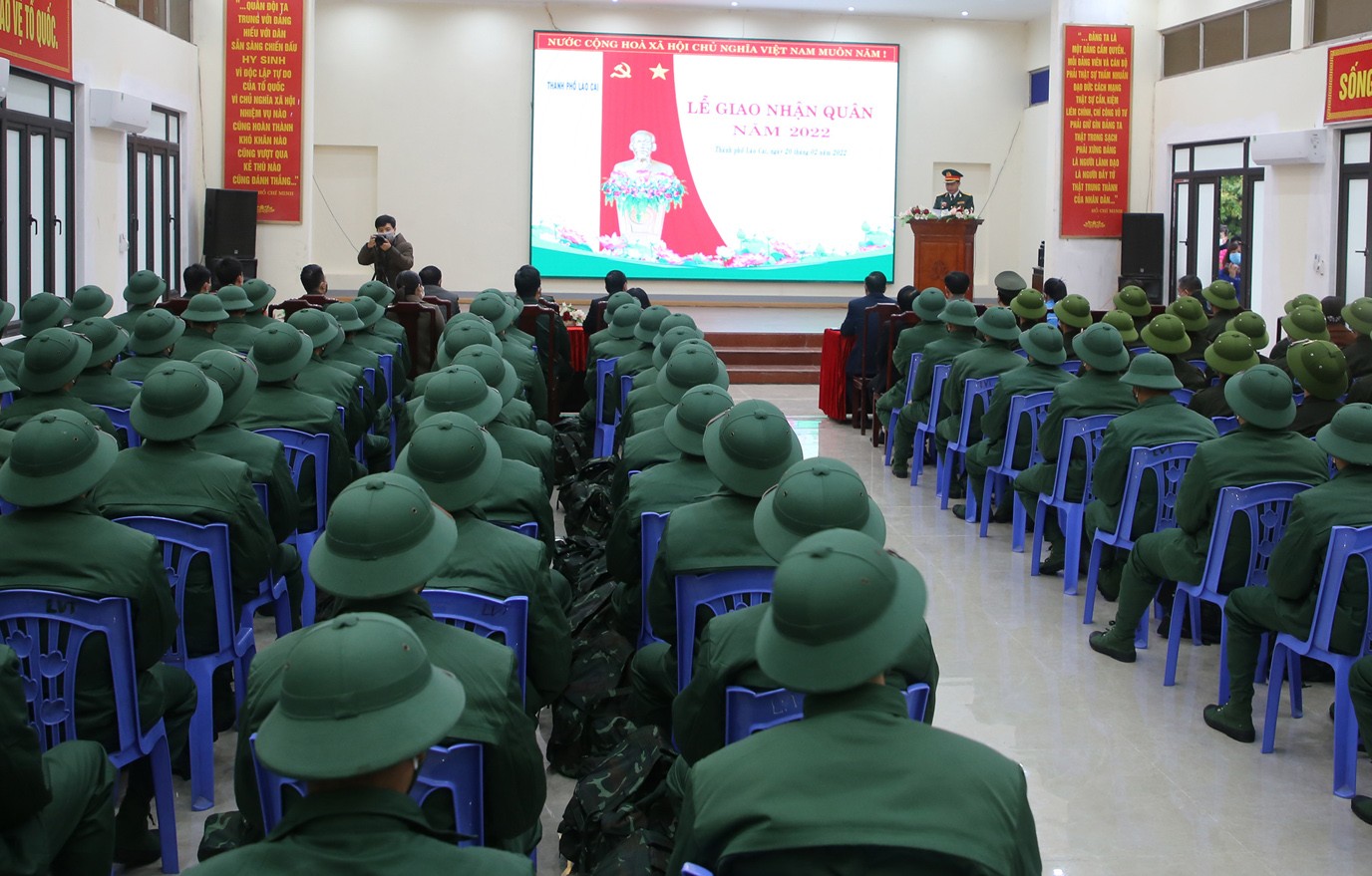 Tại thành phố Lào Cai: Năm 2022, thành phố Lào Cai có 120 tân binh lên đường thực hiện nghĩa vụ với Tổ quốc; trong đó, có 80 tân binh thực hiện nghĩa vụ quân sự và 40 tân binh thực hiện nghĩa vụ công an nhân dân.