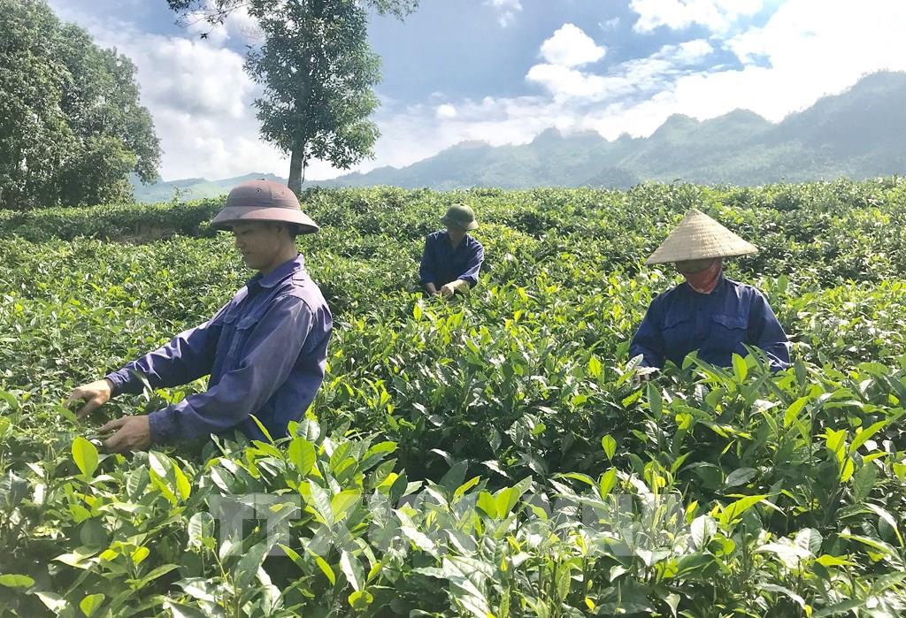 Người dân Thanh Bình (Mường Khương) thu hoạch chè. Ảnh TL.