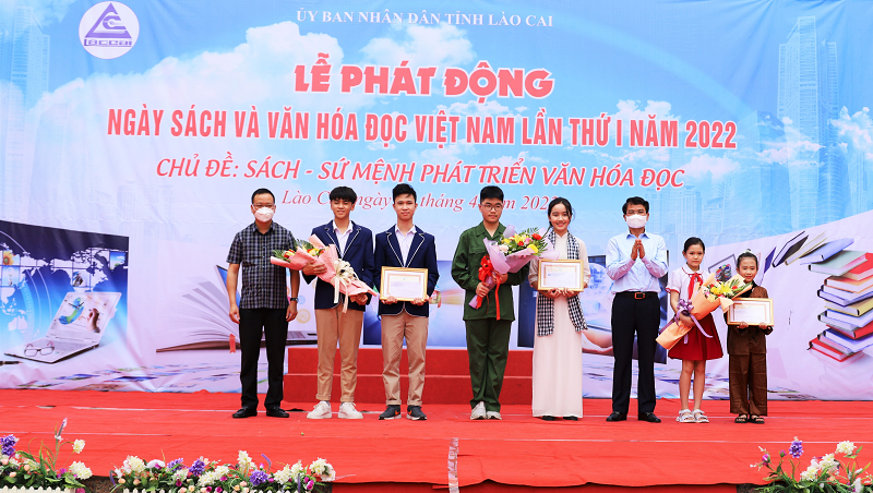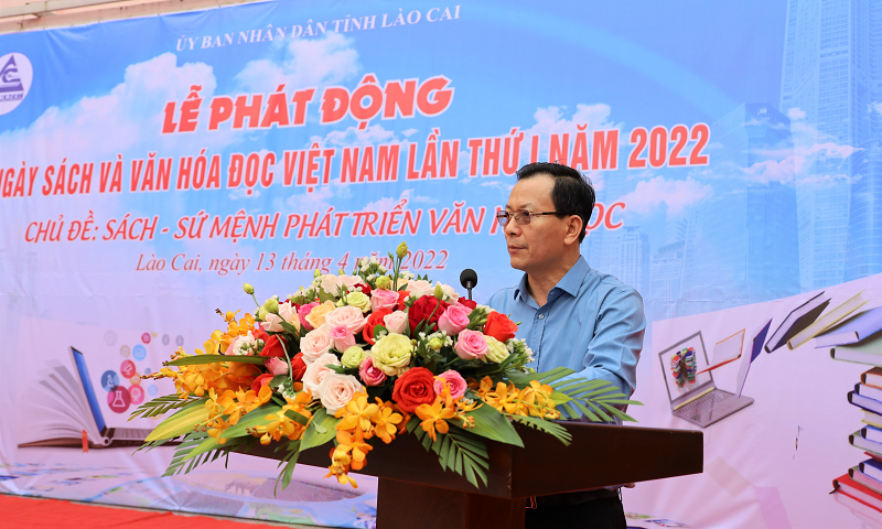 Sáng 13/4, tại Trường THCS Lê Quý Đôn, Cụm liên trường thành phố Lào Cai, UBND tỉnh đã tổ chức Lễ phát động Ngày Sách và Văn hóa đọc Việt Nam lần thứ I, năm 2022 với chủ đề “Sách – Sứ mệnh phát triển văn hóa đọc”.Tham dự buổi lễ có các đồng chí: Đặng Xuân Phong, Ủy viên Ban Chấp hành Trung ương Đảng, Bí thư Tỉnh ủy, Trưởng Đoàn đại biểu Quốc hội tỉnh; Hoàng Quốc Khánh, Ủy viên Ban Thường vụ Tỉnh ủy, Phó Chủ tịch Thường trực UBND tỉnh; lãnh đạo các sở, ban, ngành, các huyện, thị xã, thành phố; giáo viên và học sinh các trường trên địa bàn thành phố Lào Cai.