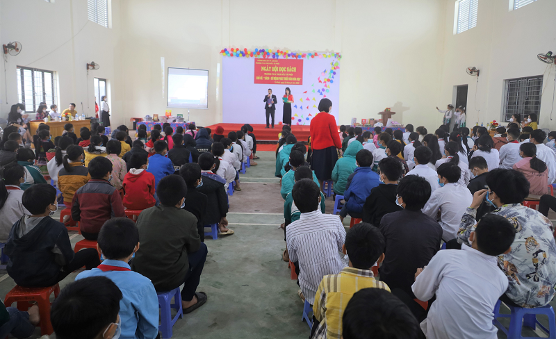 Ngày hội đọc sách được tổ chức với nhiều hoạt động thiết thực, ý nghĩa và hấp dẫn, thu hút sự tham gia của hơn 300 em học sinh như: Tuyên truyền về vai trò, tầm quan trọng của sách trong cộng đồng; Tuyên truyền về cuộc thi Đại sứ văn hóa đọc tỉnh Lào Cai năm 2022 và cuộc thi giới thiệu sách trực tuyến năm 2022; tổ chức trò chơi Nhìn hình đoán truyện, thi kể 1 câu chuyện hay đọc một bài thơ mà em có ấn tượng nhất,… nhằm tạo thói quen và nâng cao kỹ năng đọc, rèn kỹ năng kể chuyện theo sách cho học sinh, giúp các em nâng cao hiểu biết, khuyến khích khả năng sáng tạo với một sân chơi lành mạnh và nhiều ý nghĩa.