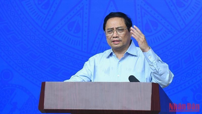 Thủ tướng Phạm Minh Chính, Trưởng Ban Chỉ đạo Quốc gia phòng, chống dịch Covid-19 phát biểu tại Phiên họp. (Ảnh: TRẦN HẢI)