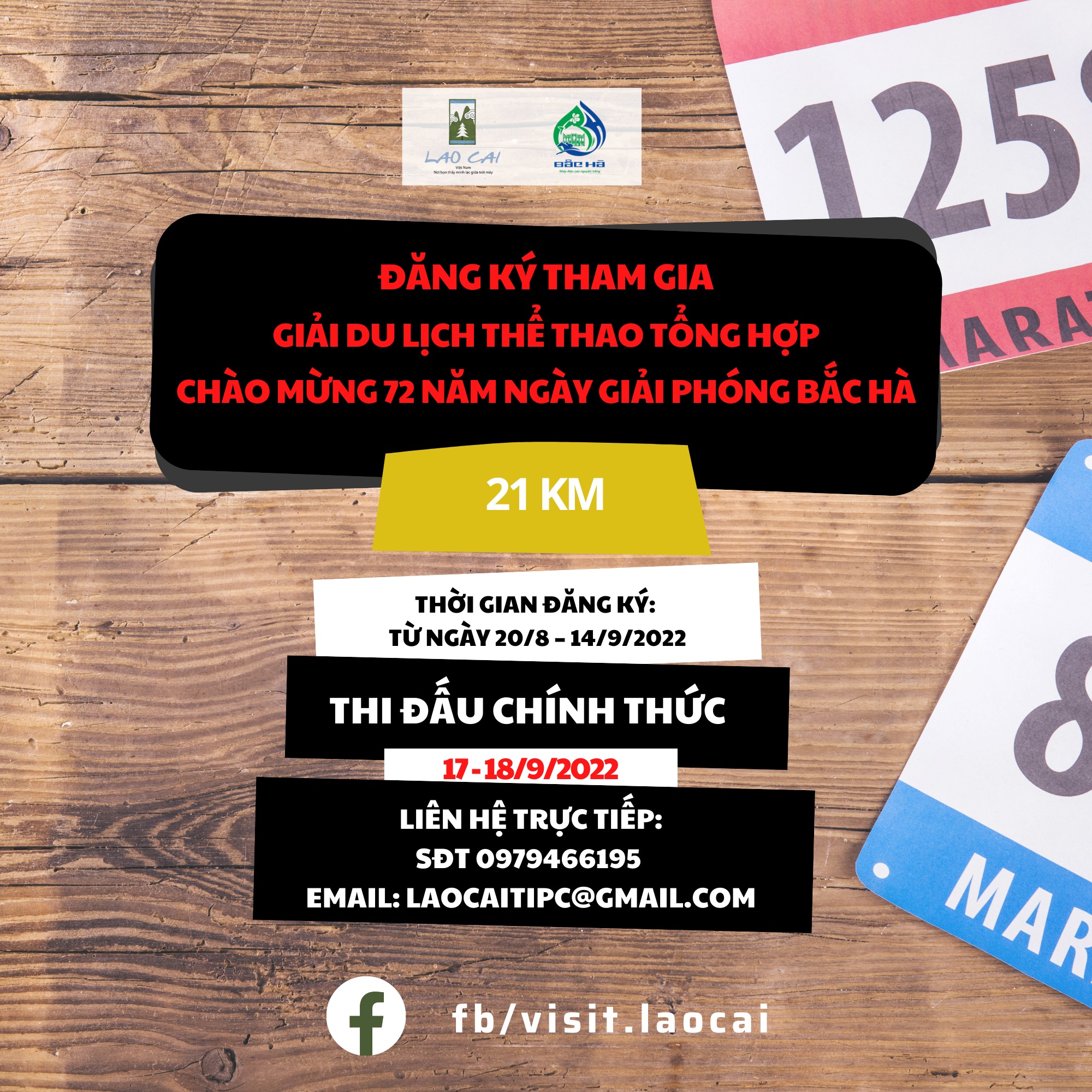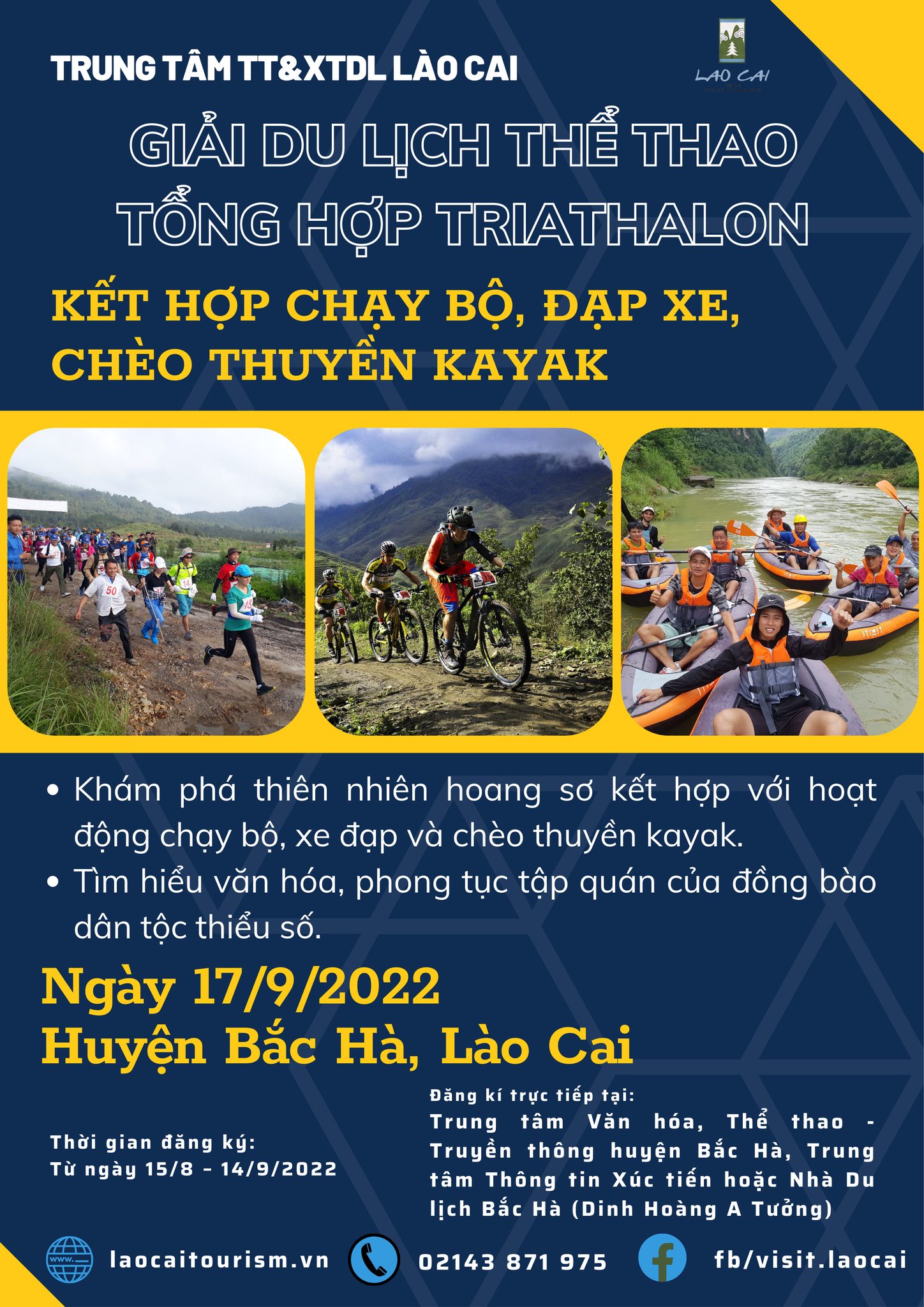 2. Giải du lịch thể thao tổng hợp: Diễn ra từ ngày 16 – 18/9/2022 tại huyện Bắc Hà và Si Ma Cai. Trong đó: Giải Chạy phong trào "Khám phá Cao nguyên Trắng Bắc Hà năm 2022" - 10 km; Giải du lịch thể thao Tổng hợp Triathlon (3 môn phối hợp: chạy bộ, đạp xe, chèo thuyền kayak) – 13 km; Giải Marathon Vượt núi Tây Bắc - Lào Cai năm 2022 – 21 km.