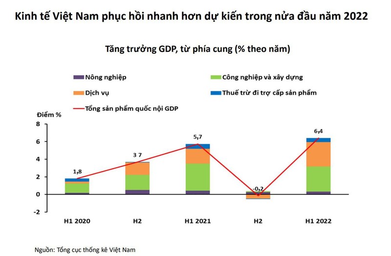 Trong 6 tháng cuối năm 2022, nền kinh tế dự kiến sẽ tiếp tục phục hồi, được hỗ trợ bởi những cân đối vĩ mô vững mạnh, chính sách tiền tệ linh hoạt và sự phục hồi nhanh hơn dự kiến của ngành chế biến chế tạo, dịch vụ và tiêu dùng nội địa từ tháng 7 đến tháng 12.