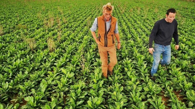 Emmanuel Lefebvre và Christophe Mazingarbe thăm cánh đồng trồng rau diếp của mình. (Ảnh: REUTERS)