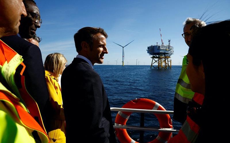 Tổng thống Macron thăm trang trại điện gió đầu tiên của Pháp. (Ảnh REUTERS)