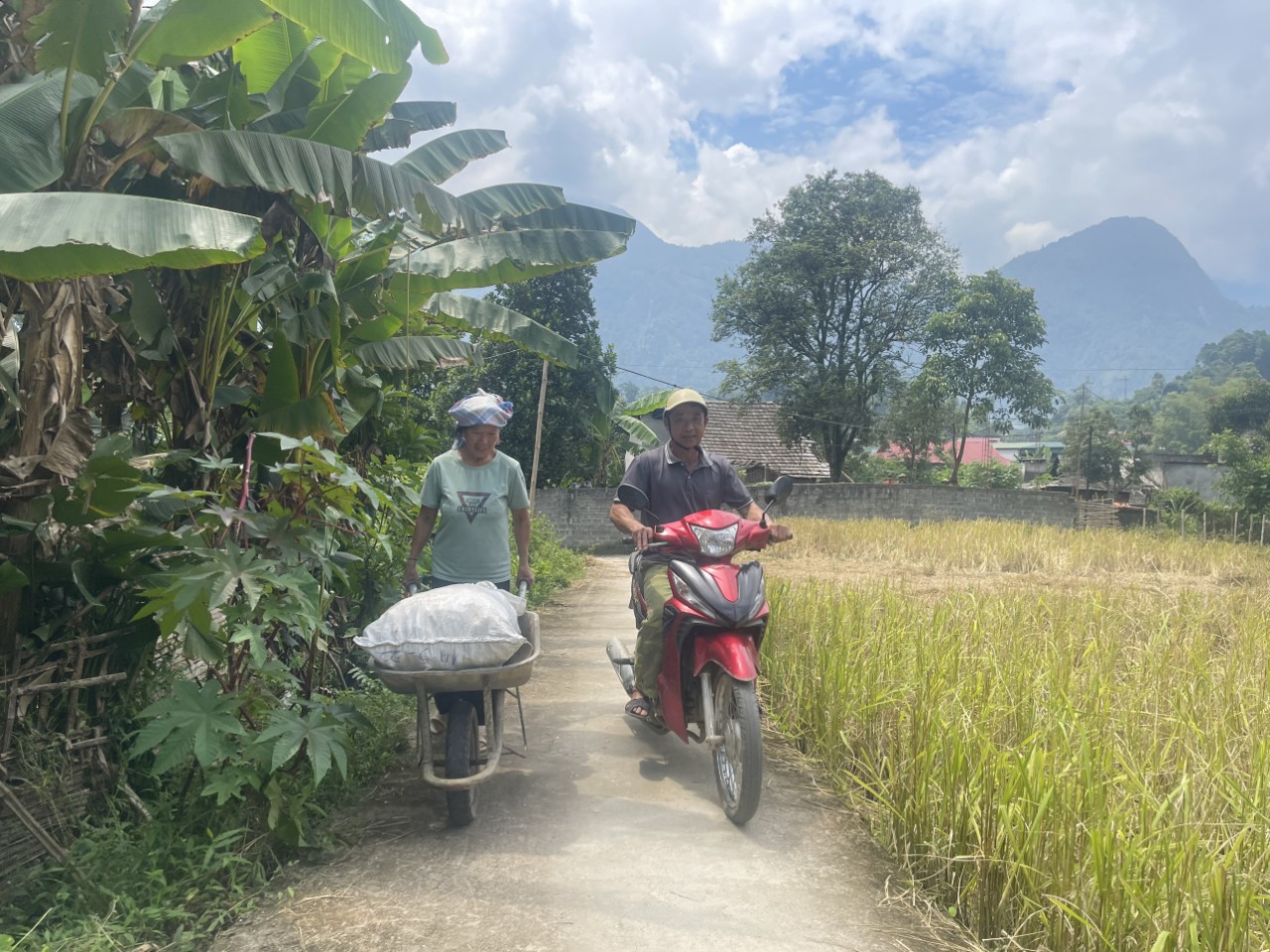 Tạm biệt bà Phùng, chúng tôi đến gia đình chị Vàng Thị Xương, hộ hiến hơn 300 m2 đất vườn cho thôn mở rộng đường. Chia sẻ với chúng tôi chị Xương nói: “Được tổ Tuyên vận đến tuyên truyền, vận động gia đình tôi đã hiến hơn 300m đất để làm đường giao thông nông thôn. Gia đình tôi ít đất sản xuất, nên diện tích đất đó là tài sản rất lớn đối với tôi. Nhưng, mở rộng đường để mình đi, giao thông thuận tiện thì so đo, tính toán làm gì. Gia đình tôi cũng cùng bà con trong thôn đổ bê tông đường giao thông, chỉnh trang nhà ở, vệ sinh đường làng ngõ xóm. Nay đường đi lại thuận tiện, sạch đẹp hơn nhiều rồi. Nhìn tuyến đường mới mở thẳng đẹp, rộng rãi, tôi vui lắm”.
