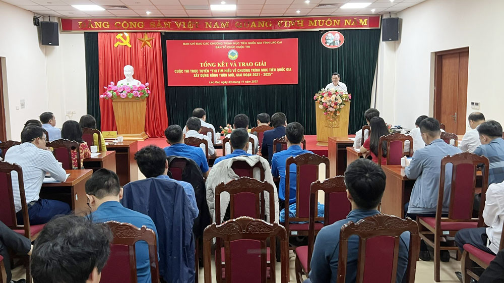 Sáng 3/11, Ban Tổ chức Cuộc thi trực tuyến “Thi tìm hiểu về Chương trình mục tiêu quốc gia xây dựng nông thôn mới giai đoạn 2021-2025” tổ chức tổng kết và trao giải cuộc thi.Cuộc thi trực tuyến "Thi tìm hiểu về Chương trình mục tiêu quốc gia xây dựng nông thôn mới giai đoạn 2021 - 2025" được tổ chức từ 10h00’ ngày 17/10/2022 và kết thúc lúc 16h00’ ngày 23/10/2022. Với ngân hàng câu hỏi là 120 câu, phần mềm tự chọn ngẫu nhiên mỗi đề thi gồm 29 câu hỏi trắc nghiệm kiến thức và 01 câu hỏi dự đoán số người trả lời đúng.