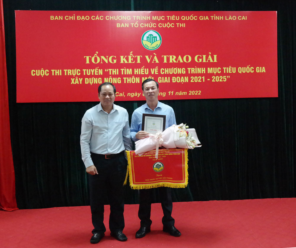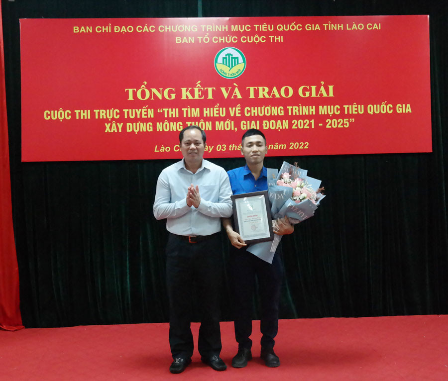 Trao giải Nhất cá nhân cho ông Ngô Hoàng Hiệp, UBND xã Xuân Quang, Bảo Thắng.