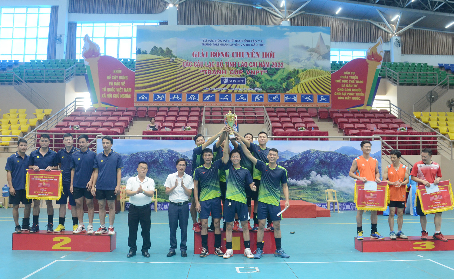 Sáng 06/11, Ban tổ chức Giải bóng chuyền hơi các câu lạc bộ tỉnh Lào Cai năm 2022 tranh Cup VNPT tổ chức bế mạc và trao giải cho các đội bóng xuất sắc.Giải đấu có sự góp mặt của 250 vận động viên thuộc 25 câu lạc bộ trong toàn tỉnh tham gia thi đấu ở 4 nội dung: Đội nam 35 - 45 tuổi, đội nam từ 46 tuổi trở lên, đội nữ 35 - 45 tuổi và đội nữ 46 tuổi trở lên.