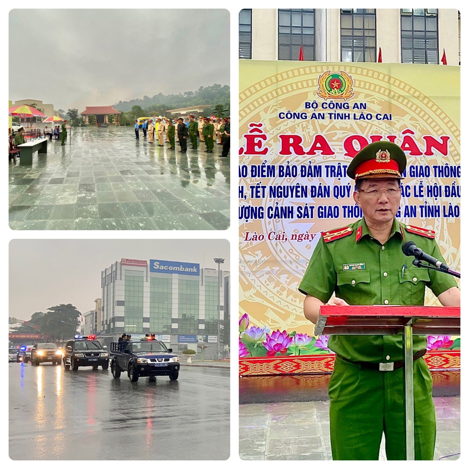 Sáng ngày 15/11/2022, Lực lượng công an, cảnh sát trên địa bàn toàn tỉnh Lào Cai đồng loạt ra quân hưởng ứng đợt cao điểm bảo đảm trật tự, an toàn giao thông, trật tự xã hội dịp Tết Dương lịch, Tết Nguyên Đán Quý Mão và các Lễ hội đầu xuân 2023. Kế hoạch được triển khai thực hiện từ ngày 15/11/2022 đến hết ngày 05/02/2023.Căn cứ theo kế hoạch, Phòng Cảnh sát giao thông Công an tỉnh, Công an các huyện, thị xã, thành phố tập trung làm tốt công tác chuẩn bị, thực hiện nghiêm túc có hiệu quả kịp thời phát hiện, phòng ngừa, ngăn chặn và tập trung xử lý từ gốc các hành vi vi phạm là nguyên nhân trực tiếp dẫn đến tại nạn giao thông, nhất là các vụ tai nạn giao thông đặc biệt nghiêm trọng; phòng ngừa, làm giảm ùn tắc giao thông; đấu tranh có hiệu quả với các loại tội phạm hoạt động trên tuyến giao thông; ngăn chặn và xử lý nghiêm các vụ tụ tập gây rối trật tự công cộng, đua xe trái phép, phục vụ nhu cầu đi lại, vui chơi, lễ hội, vận tải hành khách, hoàng hóa của nhân dân trong dịp cuối năm, lễ Noel năm 2022, Tết Dương lịch, Tết Nguyên đán Quý Mão và các Lễ hội đầu xuân 2023.