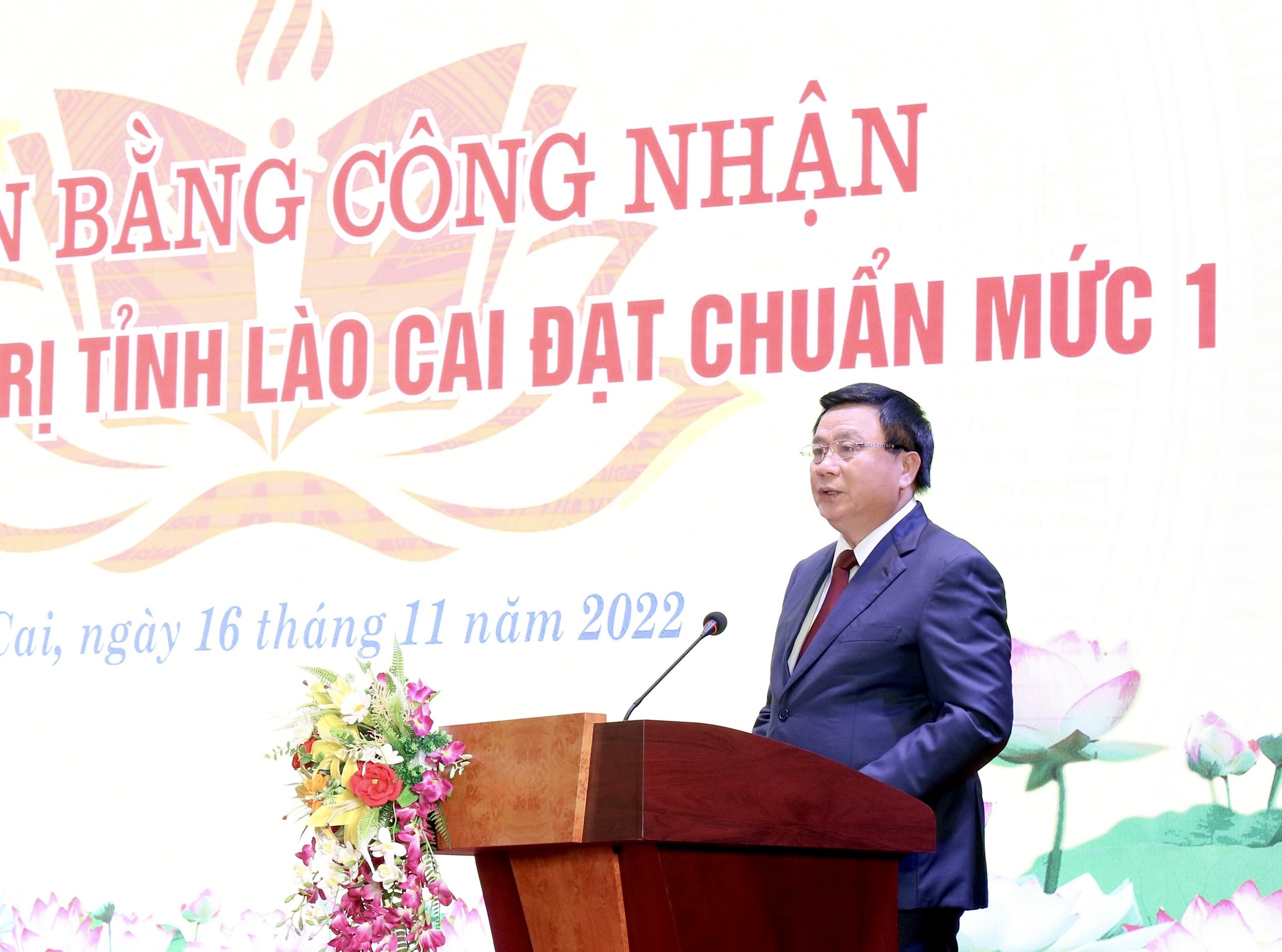 Ông Nguyễn Xuân Phong, Bí thư Tỉnh ủy Lào Cai khẳng định: Trường Chính trị Lào Cai đạt chuẩn mức độ I là niềm vinh dự, tự hào nhưng cũng là trọng trách to lớn. Đây là nhiệm vụ của cả hệ thống chính trị, không phải của riêng trường Chính trị Lào Cai. Đề nghị trường Chính trị nói riêng, và tỉnh Lào Cai nói chung tiếp tục nỗ lực, phát huy kết quả đạt được phấn đấu hoàn thành về đích đạt chuẩn mức 2 vào cuối năm 2025.
