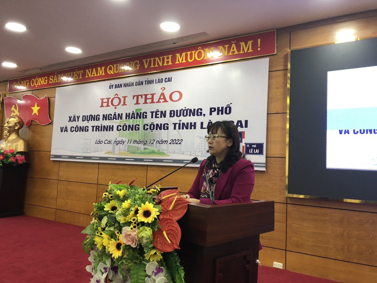 Sáng 11/12, UBND tỉnh tổ chức Hội thảo khoa học xây dựng ngân hàng tên đường, phố và công trình công cộng tỉnh Lào Cai. Các đồng chí: Giàng Thị Dung, Phó Chủ tịch UBND tỉnh; Đinh Minh Hà, Giám đốc Sở Văn hóa và Thể thao tỉnh; Bùi Văn Thắng, Chủ tịch Liên hiệp các Hội Khoa học và Kỹ thuật tỉnh đồng chủ trì hội thảo.Tham dự hội thảo có Tiến sỹ Trần Hữu Sơn, Viện trưởng Viện Nghiên cứu văn hóa dân gian ứng dụng; Tiến sỹ Đặng Vũ Cảnh Linh, Phó Viện trưởng Viện Nghiên cứu Thanh niên Việt Nam; Giáo sư Phạm Duy Đức, nguyên Viện trưởng viện Văn hóa, Học viện chính trị quốc gia Hồ Chí Minh; Giáo sư Đặng Cảnh Khanh, Giám đốc Quỹ Văn hiến Việt Nam và gần 100 đại biểu là các chuyên gia, nhà khoa học, nhà quản lý văn hóa, giáo viên dạy bộ môn Lịch sử.