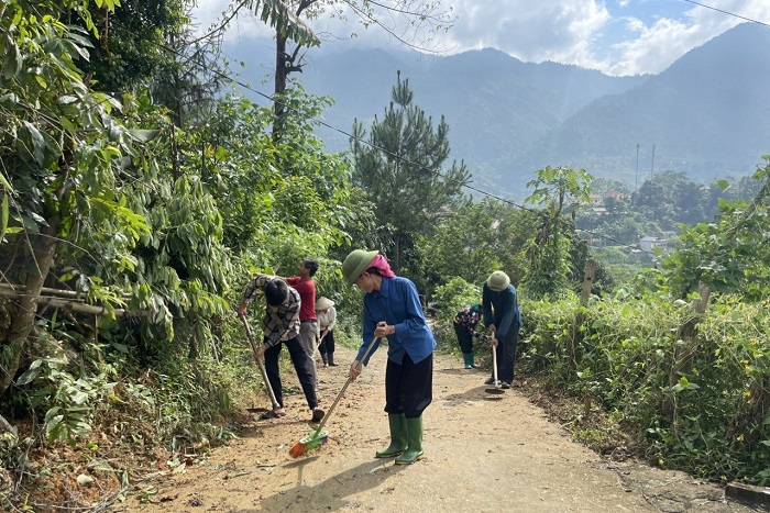 Nhân dân tham gia dọn vệ sinh đường làng ngõ xóm, chuẩn bị cho việc mở đường giao thông nông thôn.