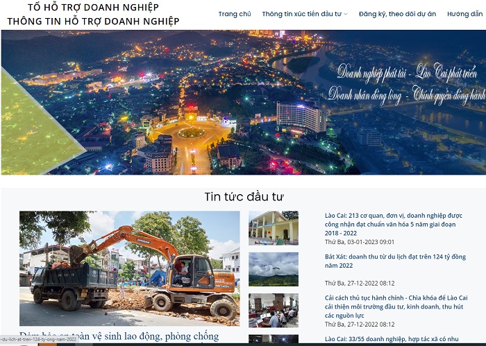Giao diện Cổng thông tin hỗ trợ doanh nghiệp tỉnh Lào Cai.