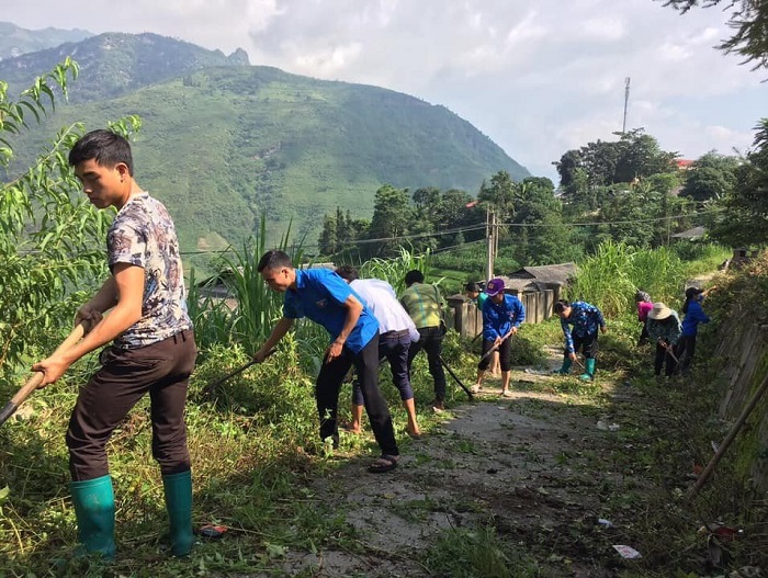 Nhân dân xã Lùng Cải, huyện Bắc Hà tích cực tham gia vệ sinh môi trường nông thôn.