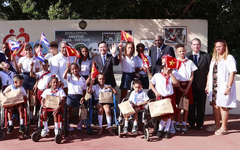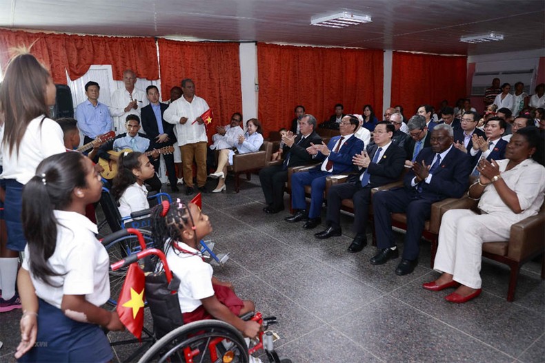 Sinh thời Chủ tịch Hồ Chí Minh kính yêu đã nói: “Trẻ em như búp trên cành”, đối với những trẻ em khuyết tật thì càng phải được cấp ủy, chính quyền từ Trung ương đến địa phương hết sức quan tâm, yêu thương, nâng niu, nuôi dưỡng và chăm sóc. Những mô hình trường dành cho trẻ khuyết tật như thế này được tổ chức ở nhiều địa phương của Cuba, cũng là những mô hình phổ biến hiện nay ở nhiều địa phương của Việt Nam, thể hiện tính nhân văn rất cao cả và bản chất tốt đẹp của chế độ chúng ta "thương người như thể thương thân" và “không để một ai bị bỏ lại phía sau… Chủ tịch Quốc hội Vương Đình Huệ |