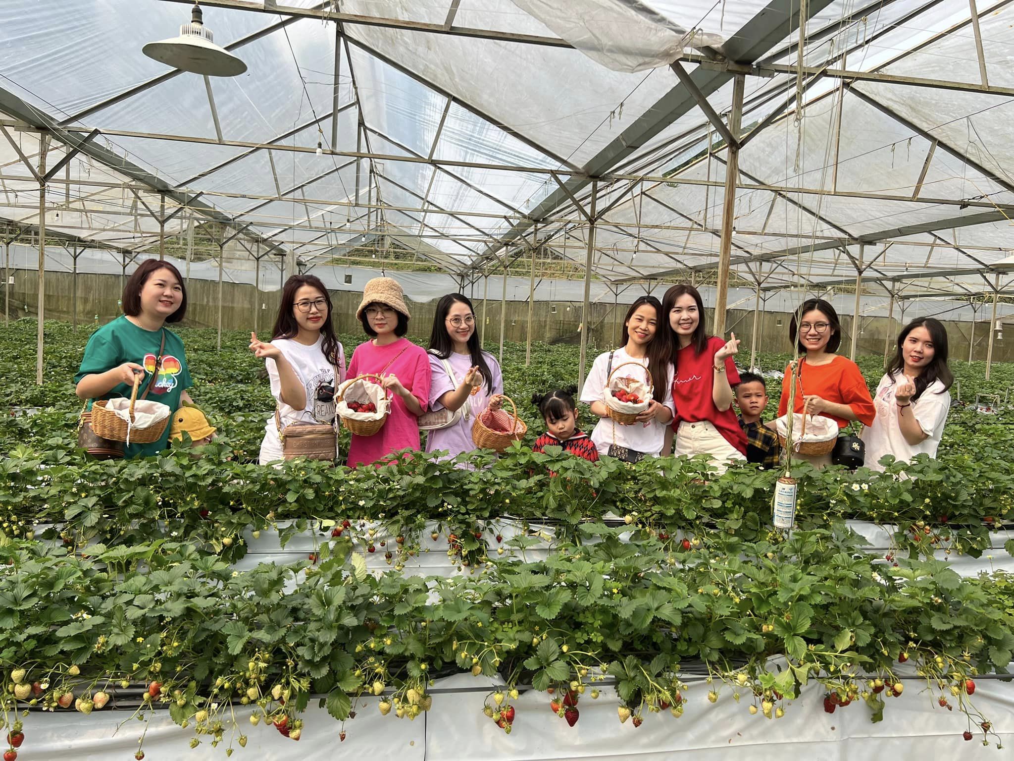 Khách du lịch trải nghiệm hái dâu tây tại Sa Pa.