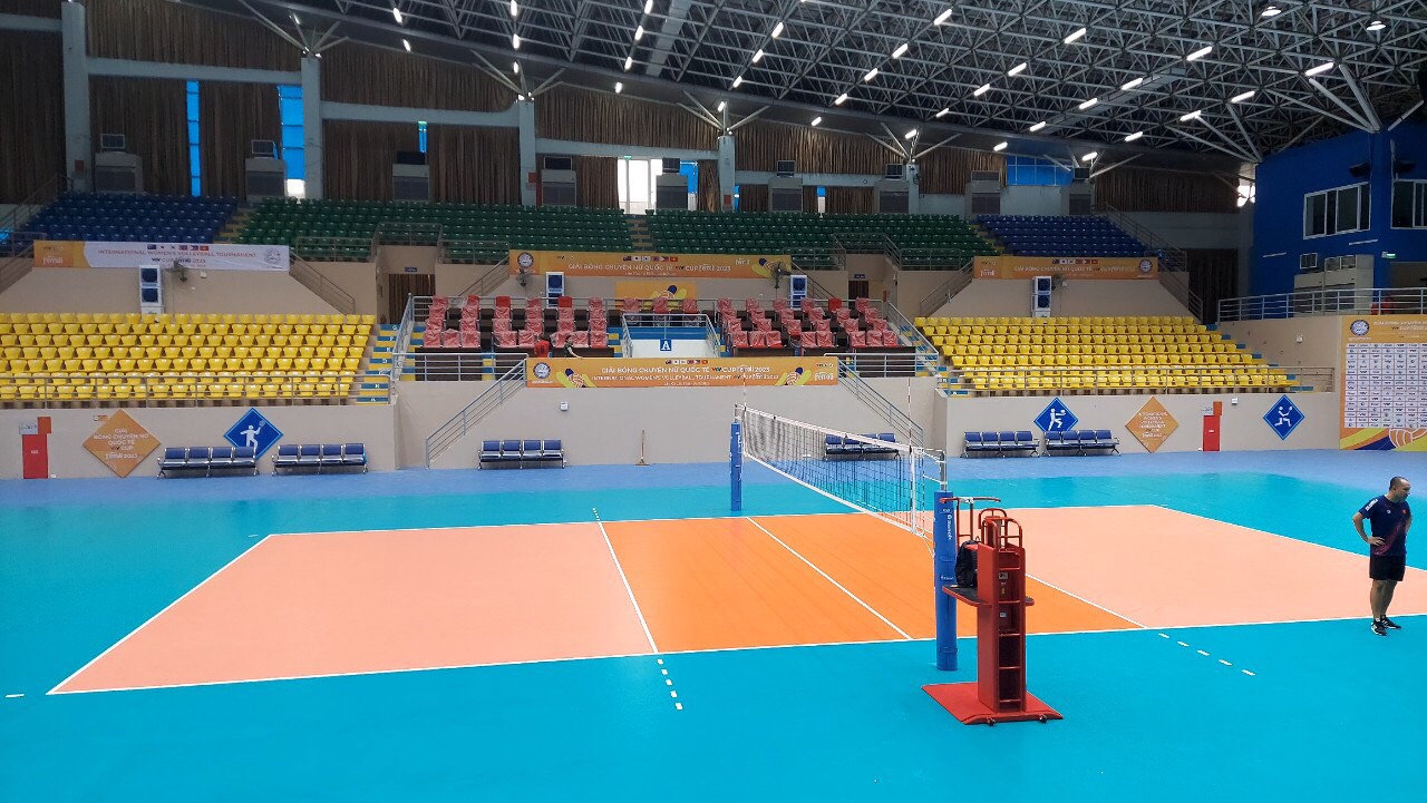 Hệ thống điện, điều hòa, thảm, cột thi đấu đã sẵn sàng phục vụ các trận thi đấu.