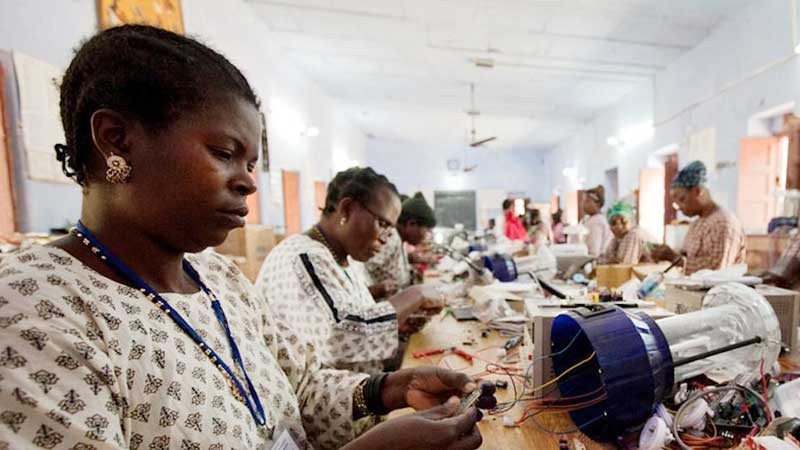 Phụ nữ châu Phi học cách lắp ráp linh kiện thiết bị điện mặt trời. (Ảnh LIÊN HỢP QUỐC)