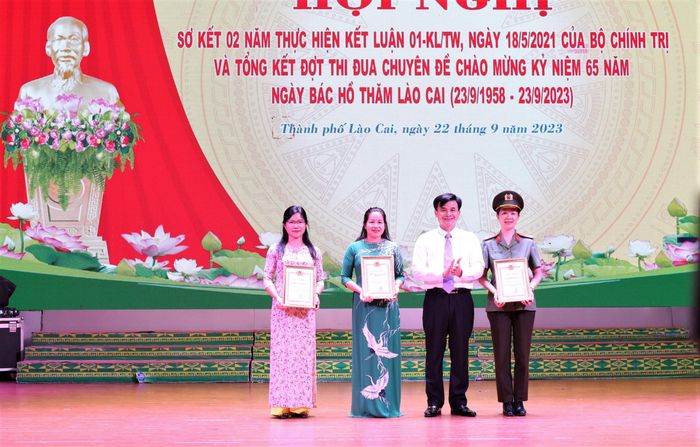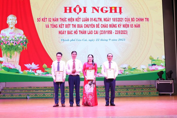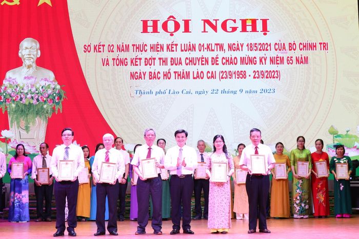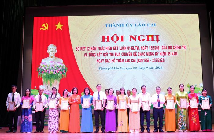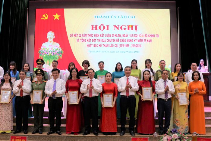 Dịp này, Thành ủy Lào Cai tổ chức trao giải, khen thưởng cho tập thể, cá nhân thành tích xuất sắc trong tham gia các cuộc thi: Thi viết “Nét đẹp thường ngày”; Cuộc thi trắc nghiệm trên internet tìm hiểu 75 năm Ngày Chủ tịch Hồ Chí Minh nêu Sáu điều dạy Công an Nhân dân (11/3/1948 - 11/3/2023) và 75 năm Ngày Chủ tịch Hồ Chí Minh ra Lời kêu gọi thi đua ái quốc (11/6/1948 - 11/6/2023); Thi Bí thư Chi bộ giỏi thành phố Lào Cai năm 2023.
