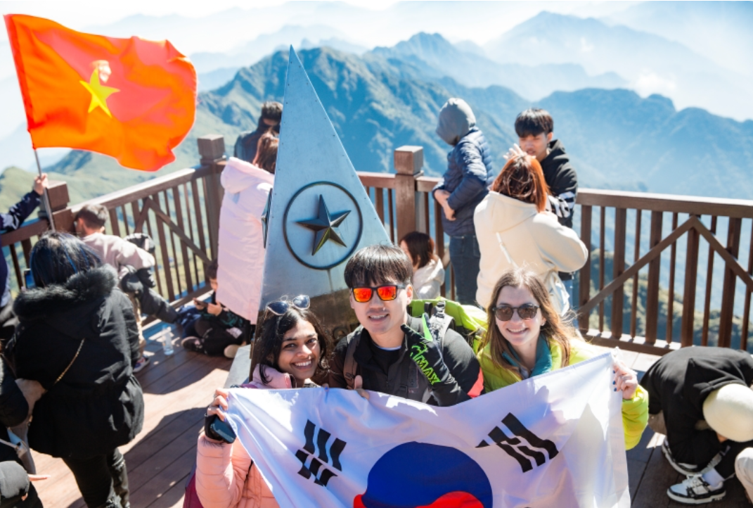 Du khách Hàn Quốc trên đỉnh Fansipan (Ảnh: CTV)