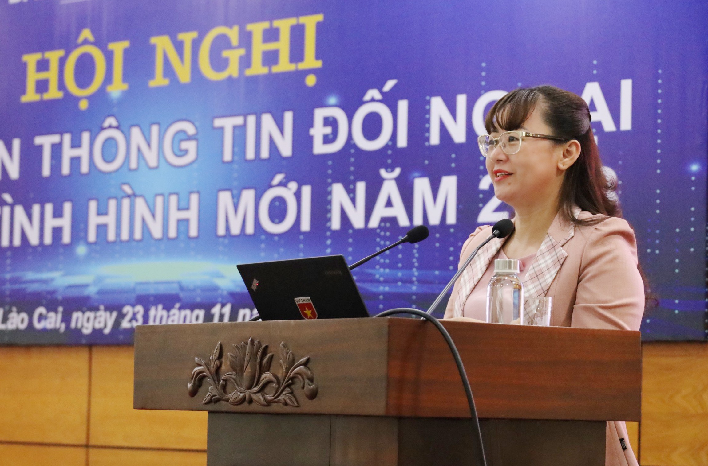 Phát biểu khai mạc hội nghị, đồng chí Giàng Thị Dung, Phó Chủ tịch UBND tỉnh khẳng định công tác thông tin đối ngoại là một bộ phận quan trọng trong công tác tuyên truyền, công tác tư tưởng của Đảng và là nhiệm vụ thường xuyên, lâu dài. Thực hiện công tác thông tin đối ngoại là nhiệm vụ của cả hệ thống chính trị, trước hết là của các cơ quan chuyên trách về thông tin đối ngoại, các cơ quan báo chí, truyền thông dưới sự lãnh đạo của Đảng, sự quản lý của Nhà nước. Những năm qua, tỉnh Lào Cai đã ban hành nhiều văn bản quan trọng để lãnh đạo, chỉ đạo thực hiện công tác này trên địa bàn toàn tỉnh. Đặc biệt là kế hoạch thực hiện Kết luận số 57-KL/TW của Bộ Chính trị về tiếp tục nâng cao chất lượng, hiệu quả công tác thông tin đối ngoại trong tình hình mới trên địa bàn tỉnh Lào Cai. Công tác thông tin đối ngoại đã góp phần quan trọng trong việc củng cố sự đồng thuận xã hội; giữ vững ổn định chính trị, an ninh biên giới quốc gia, bảo vệ vững chắc độc lập, chủ quyền và toàn vẹn lãnh thổ, tạo điều kiện thuận lợi cho phát triển kinh tế - xã hội.