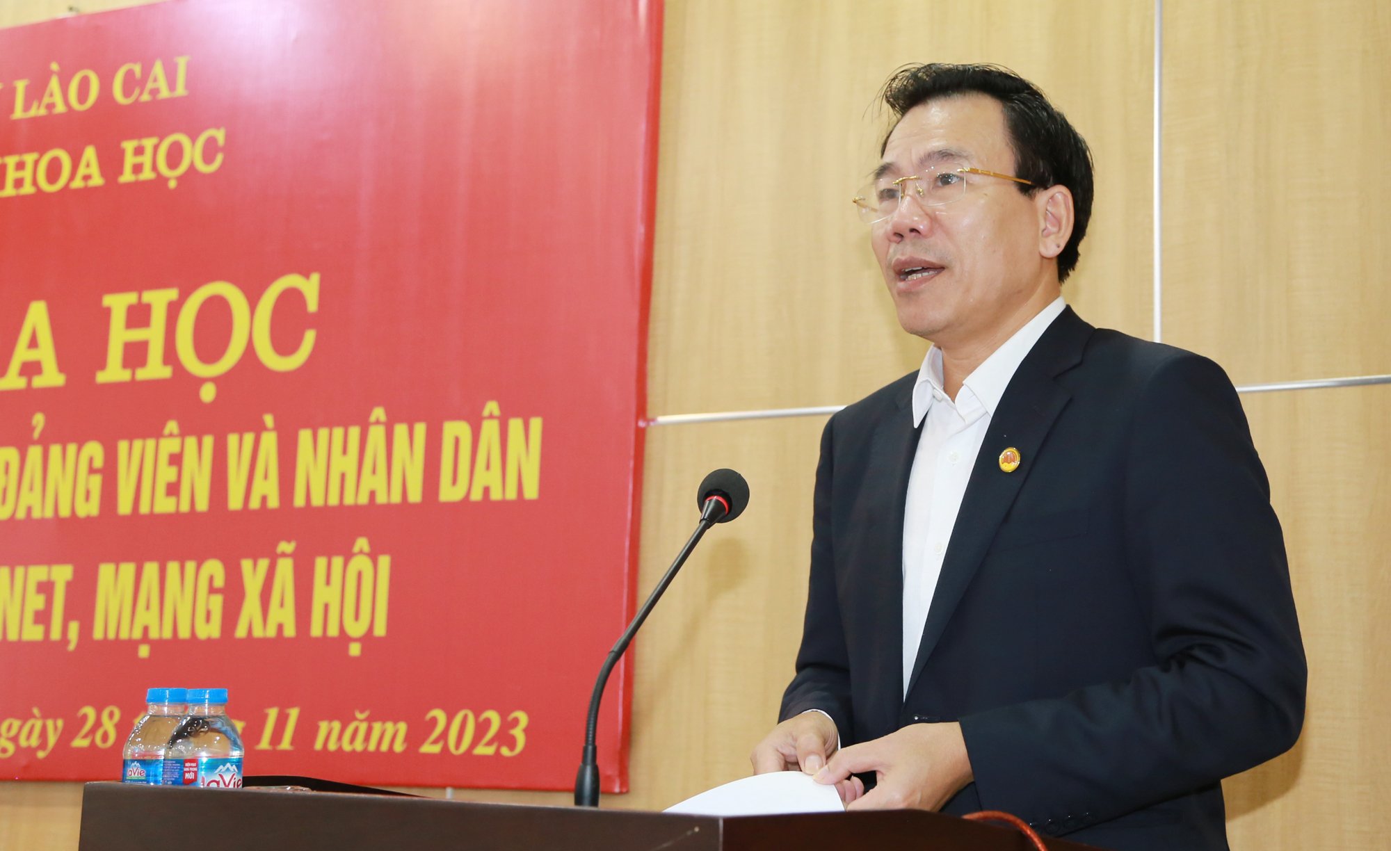 Phát biểu đề dẫn hội thảo, đồng chí Dương Đức Huy - Trưởng Ban Tuyên giáo Tỉnh ủy nêu: Lào Cai là tỉnh miền núi, biên giới, trình độ dân trí không đồng đều giữa các địa phương; tỷ lệ người dân tộc thiểu số cao. Do đó, việc tuyên truyền nâng cao trách nhiệm của cán bộ, đảng viên và các tầng lớp Nhân dân trong sử dụng internet, mạng xã hội là nhiệm vụ khó, cần có sự kiên trì, quan tâm, phối hợp thường xuyên giữa các cấp, các ngành, địa phương.