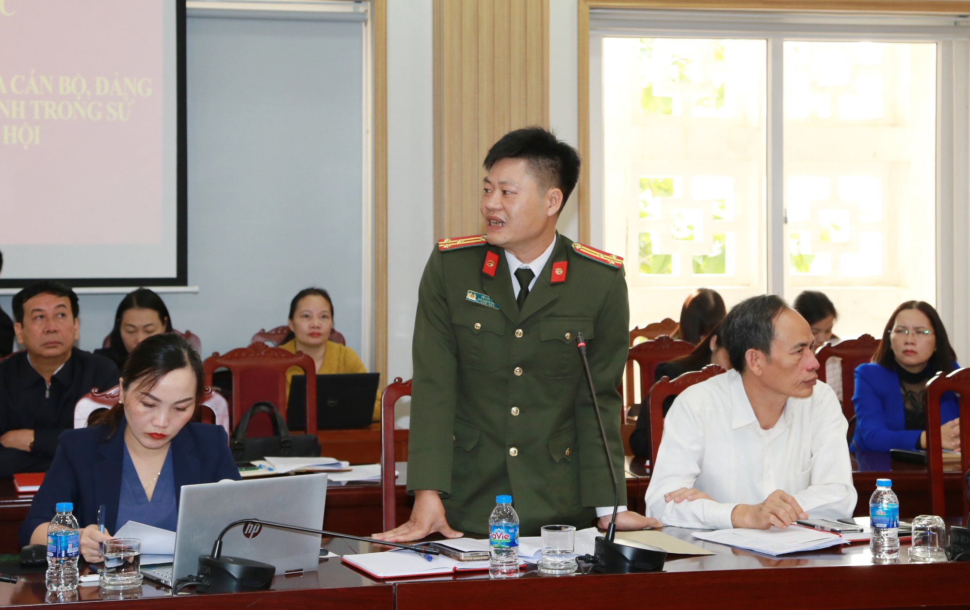 Đại diện Công an tỉnh trình bày tham luận tại hội thảo.