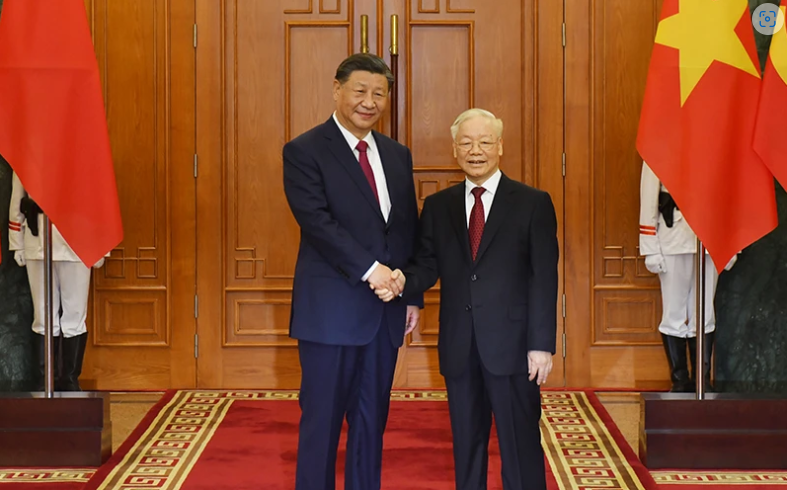 Tổng Bí thư Nguyễn Phú Trọng bày tỏ vui mừng và nhiệt liệt chào mừng Tổng Bí thư, Chủ tịch nước Tập Cận Bình cùng Phu nhân và Đoàn đại biểu cấp cao Đảng, Nhà nước Trung Quốc sang thăm cấp Nhà nước Việt Nam, nhấn mạnh chuyến thăm Việt Nam lần thứ ba của Tổng Bí thư, Chủ tịch Trung Quốc Tập Cận Bình diễn ra đúng vào dịp hai nước kỷ niệm 15 năm thiết lập quan hệ Đối tác hợp tác chiến lược toàn diện (2008-2023), thể hiện tình cảm đặc biệt của Tổng Bí thư, Chủ tịch nước Tập Cận Bình đối với truyền thống hữu nghị, tầm vóc quan hệ song phương hiện nay cũng như triển vọng tốt đẹp trong thời gian tới của quan hệ hai nước.
