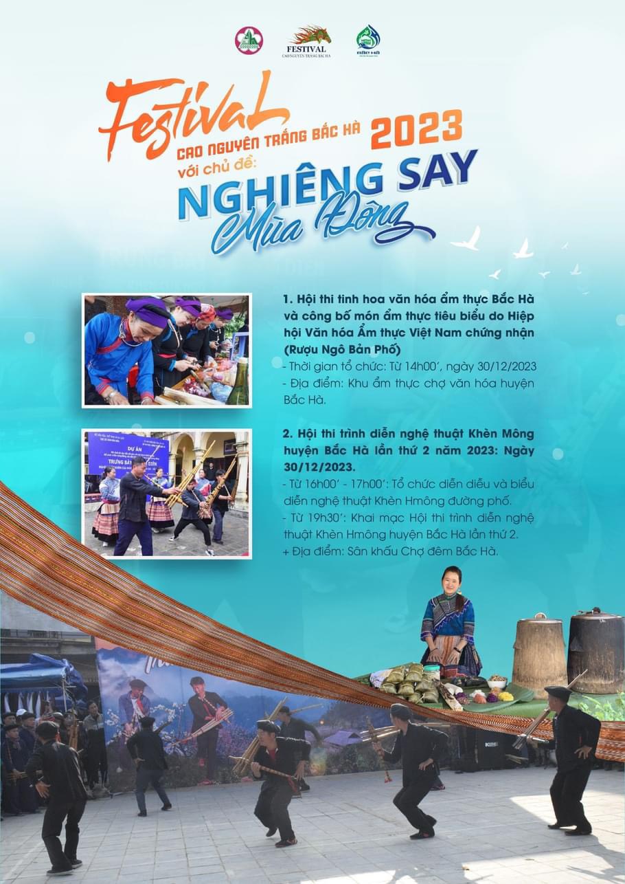 Festival Cao nguyên trắng Bắc Hà mùa đông năm 2023 diễn ra hai hoạt động chính là Hội thi tinh hoa văn hóa ẩm thực Bắc Hà và Hội thi trình diễn nghệ thuật khèn Mông.