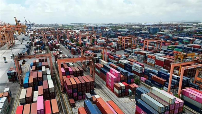 Kho bãi chứa container tại cảng Tân Vũ (Hải Phòng). (Ảnh: TTXVN)